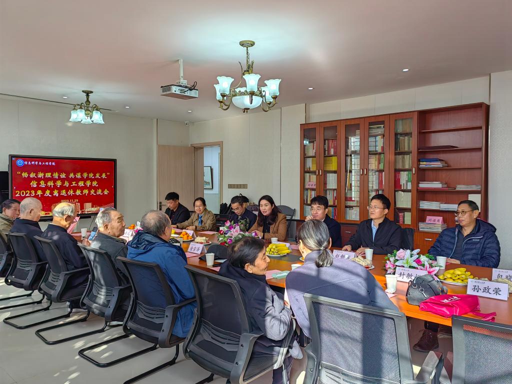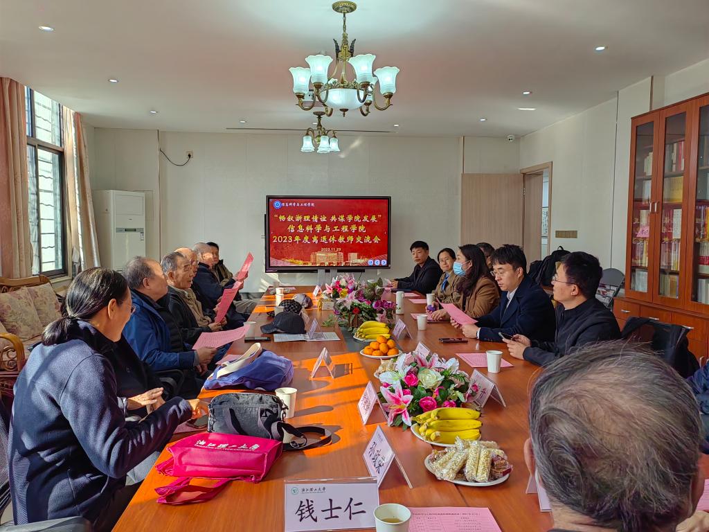 在文一校区108会议室举行2023年度离退休教师交流会。学院党委书记苏丽辉,院长沈剑,副院长童基均、赵新龙,院长助理高金凤等出席座谈会,会议由学院工会主席张恩政主持。学院离退休教师参加本次会议。