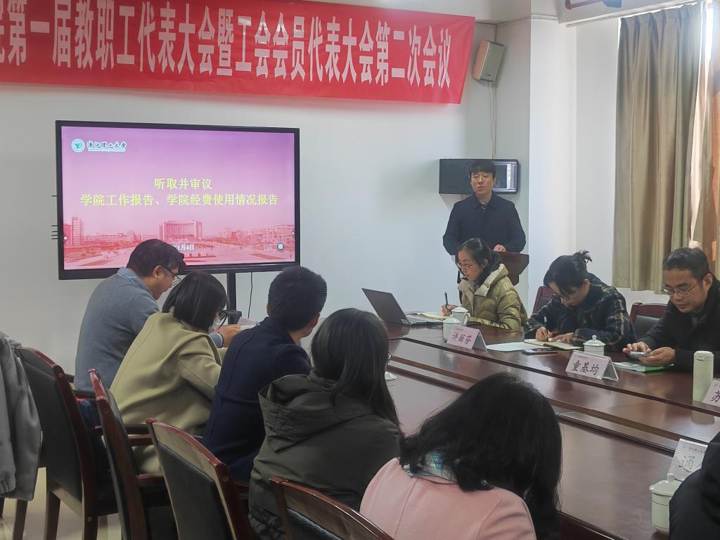 第一届教职工代表大会暨工会会员代表大会第二次会议在25号楼1210会议室举行,学院党政班子成员、29名正式代表出席会议。会议由学院党委副书记许丽芬主持。