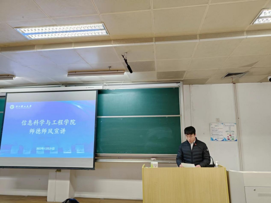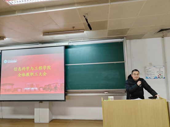 会议第三阶段,院长沈剑对学院2023年度工作做了总结。他对学院在国家级人才申报、科研项目、平台建设等方面取得的成绩给予了肯定。同时,沈剑呼吁并鼓励全院教师积极申报基金项目,多参加学院组织的国际自然科学基金项目申报指导与交流讲座,借鉴成功经验,提高申报成功率。建议学院教师在教学成果上投入更多思考,争取省部级教育教学奖励。他还指出,学院必须建设自己的生源基地,在抢抓优质生源上深入谋划、提前发力。最后,沈剑作师德师风宣讲。学院教师要落实好“立德树人”根本任务,努力做到以德立身、以德施教,做学生健康成长的指导者和引路人。