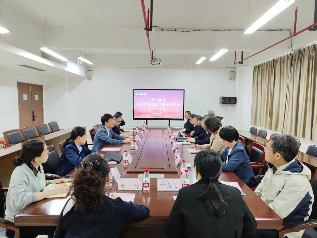 11月14日下午,浙大宁波理工学院信息学院党委书记郑毅、副院长陶吉利、副院长裘君、党委副书记张维雅、副院长沈非凡、实验中心主任朱勇、竞赛负责人孙炯、集成电路团队负责人叶益迭、党政办综合秘书赵静等一行9人来学院开展调研交流活动。学院院长沈剑,副院长童基均,党委副书记、纪委书记许丽芬,院长助理高金凤,实验中心主任金海,综合办公室主任阮晶晶等一同出席参会。