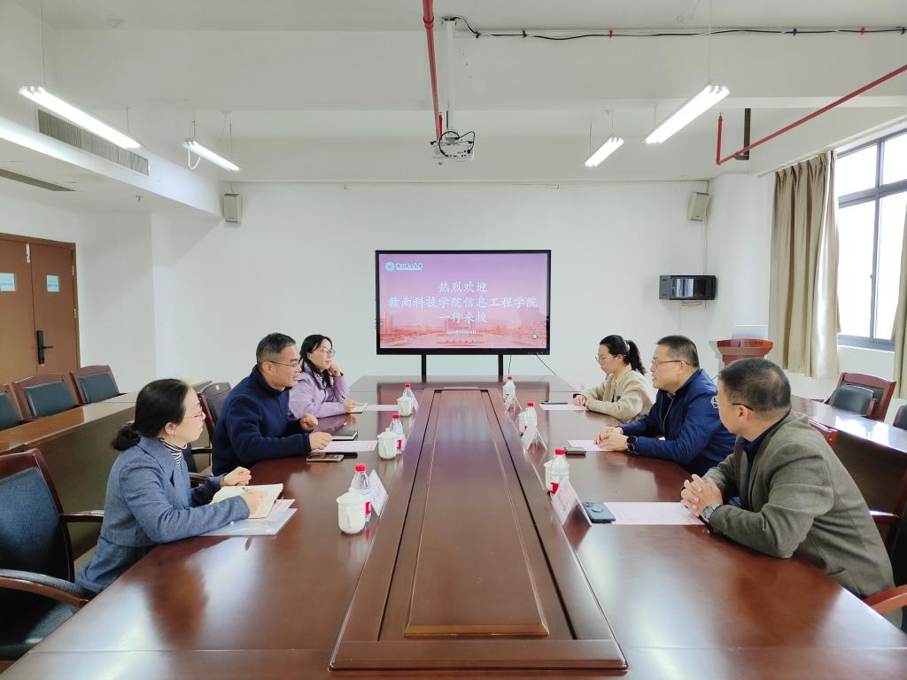 11月18日上午,赣南科技学院信息工程学院副院长胡健、党委副书记邓小鸿、教师刘祥敏等一行3人来我院交流学习。学院副院长童基均,党委副书记、纪委书记许丽芬,综合办公室主任阮晶晶等出席参会。