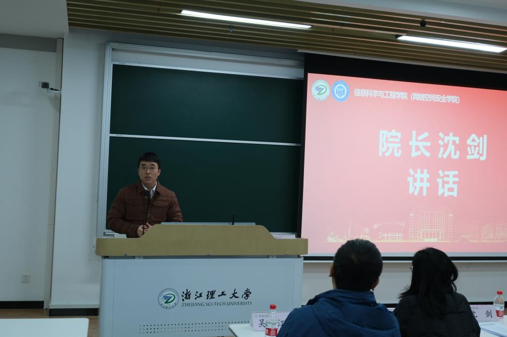 沈剑讲话。他鼓励同学们坚定信念,持之以恒,合理规划时间和进度,做到劳逸结合,以饱满的精神状态迎接最后的考试,全力以赴,梦想成真,成功上岸。