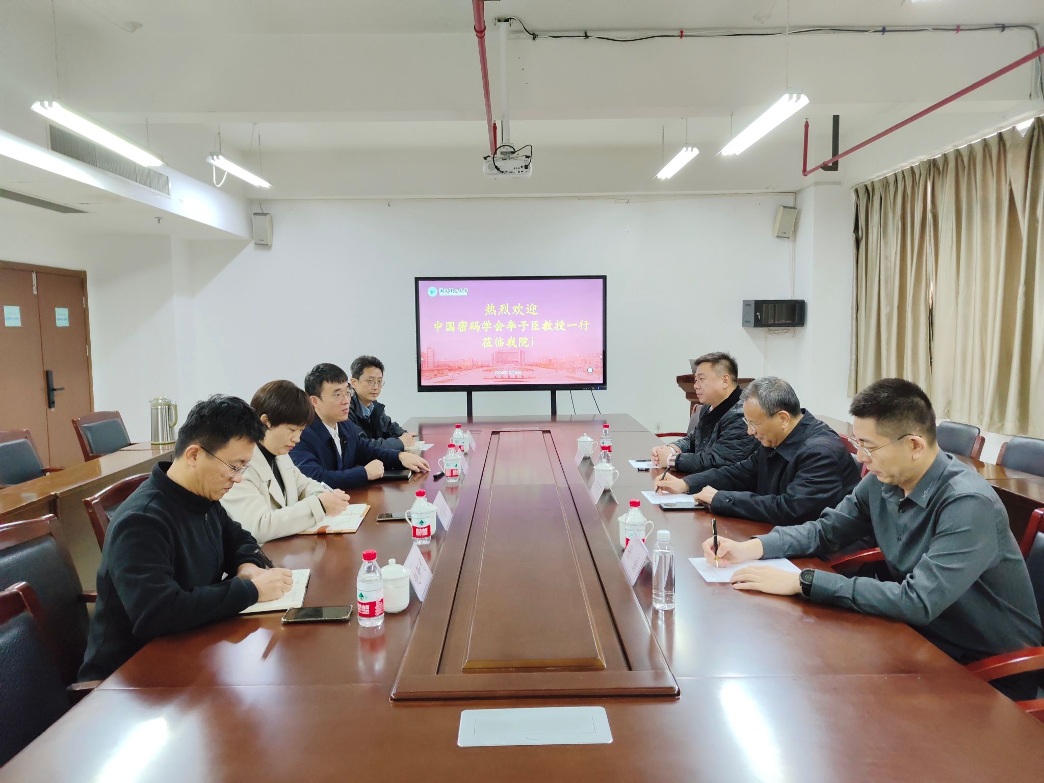 12月6日下午,中国密码学会常务理事、教育与科普工作委员会主任李子臣一行应邀来学院交流访问,学院党委书记苏丽辉、院长沈剑、副院长赵新龙、通信工程系教师金子龙出席座谈会。
